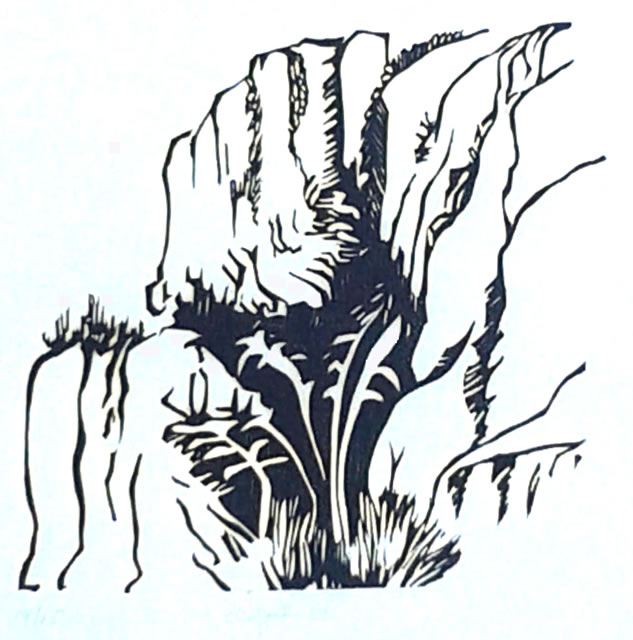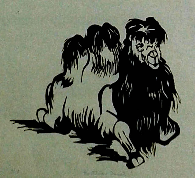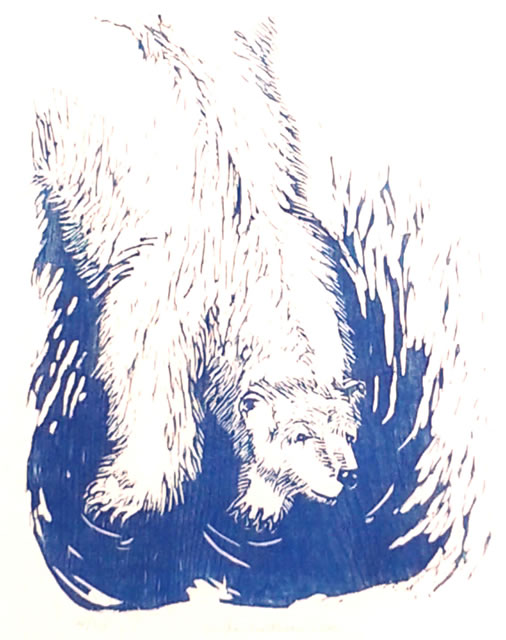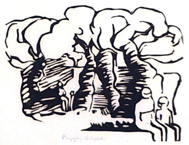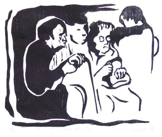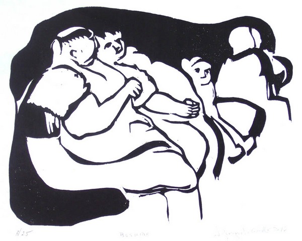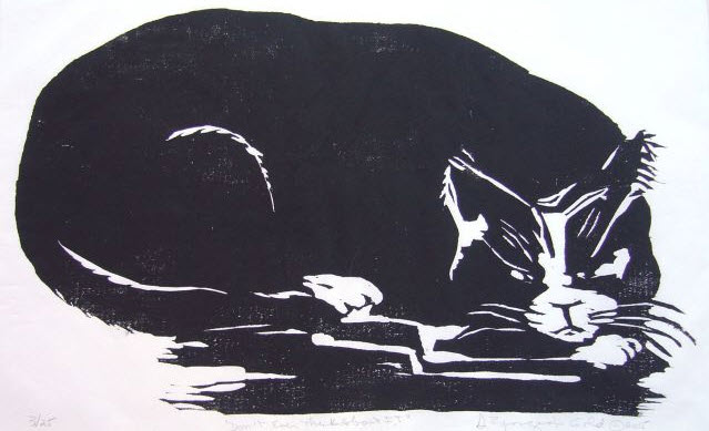 Woodblock print: black ink on Cameo paper, matted and framed. Framed size 16" x 16"